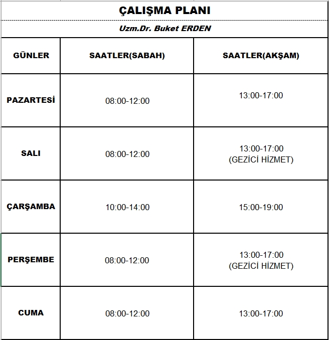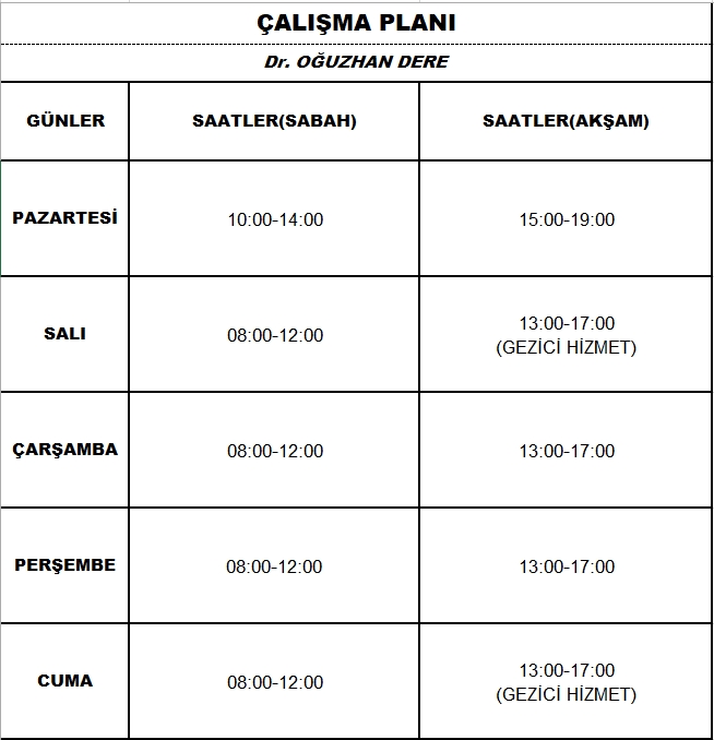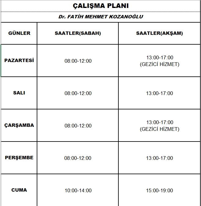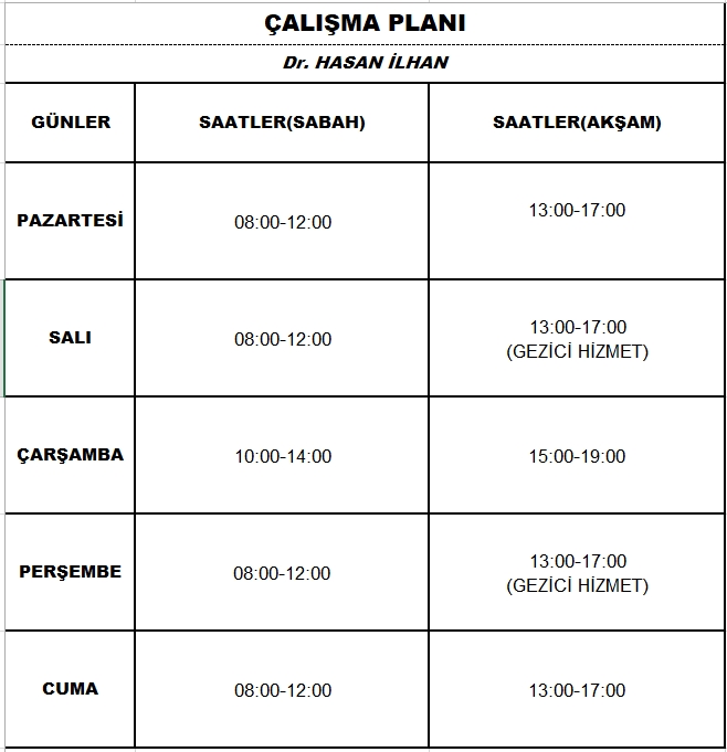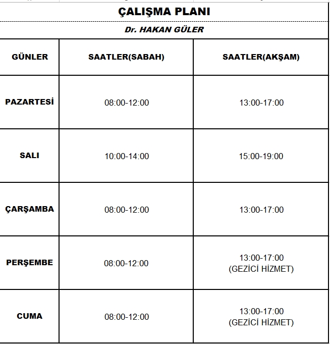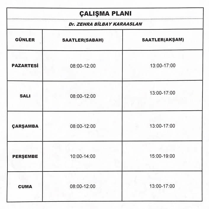 Çalışma Saatlerimiz